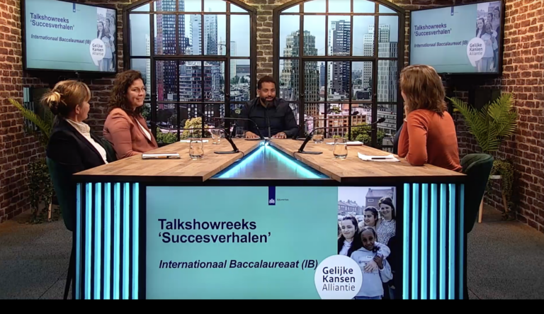 In deze talkshowreeks geeft de Gelijke Kansen Alliantie aandacht aan interessante concepten met een wetenschappelijke basis die bijdragen aan kansengelijkheid. In de derde aflevering spreken we over het Internationaal Baccalaureaat (IB) onderwijs.